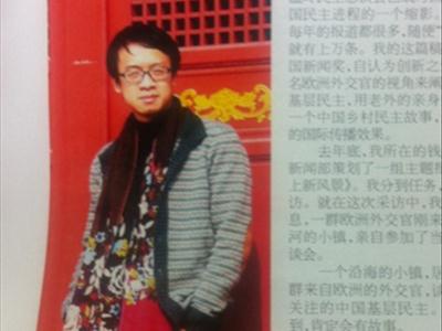 2012年底,史春波所在的钱江晚报浙江新闻部策划了一组主题报道《两富路上新风景》。他分到任务,前往温岭采访。他把稿子的视角就定在了欧洲外交官眼中的中国乡村民主恳谈。稿子用近乎白描的手法,写了33名外交官亲身经历的一次民主恳谈会,他们和中国乡镇官员、村民的对话。稿子里的外交官们成了故事的传播者,他们告诉世界,一个真实的中国基层民主。