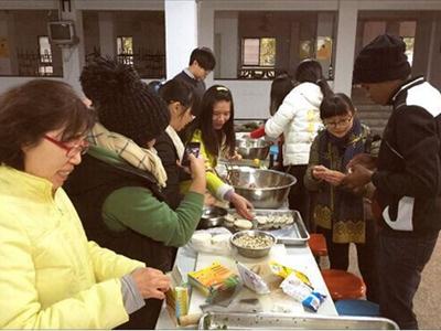 12月22日日我国农历冬至节。当天下午,校友工作协会约请在我校任教和留学的外国校友40多人,在临海校区学校食堂进行冬至日庆祝活动。