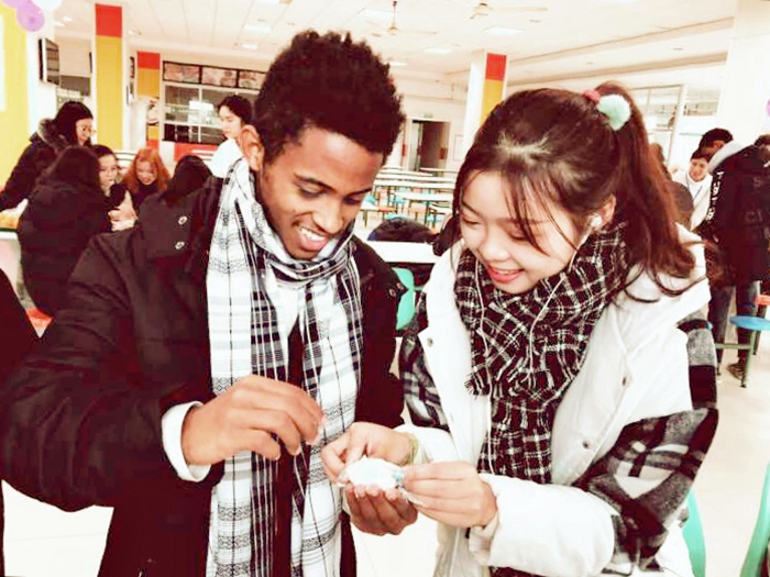冬至节吃饺子和汤圆是中国的传统习俗。饺子和汤圆分别有着“捏福”“团圆”“生活蒸蒸日上”的寓意。外国友人在中国校友的带领下认真学习如何包出精致的饺子。中外校友一起动手,在传统食物的制作过程中体验中外文化的不同。联谊会上,中外校友还准备了丰富多彩的节目和互动游戏。在汉字猜写环节,让中国校友感受到了外国校友对中国汉字的熟稔。表演环节中,外国校友也踊跃上台表演本国特色节目。联谊会在欢乐祥和的氛围中圆满落幕。