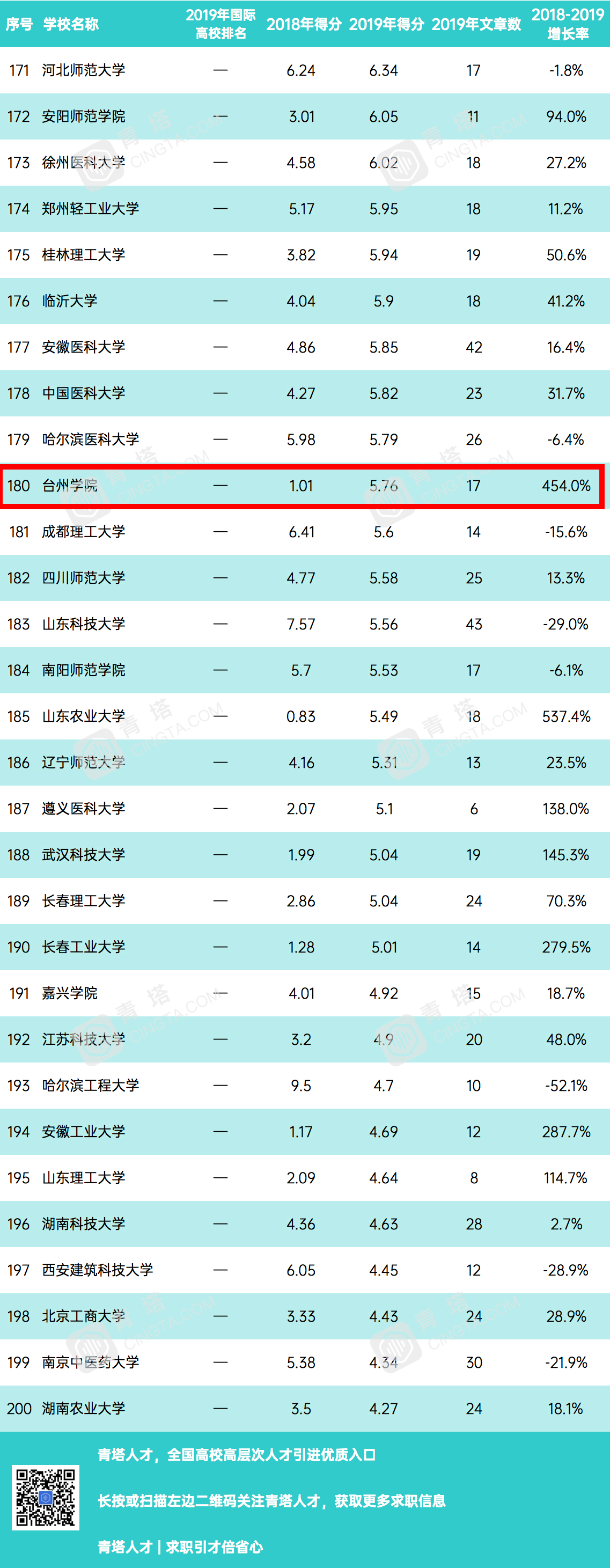 日前,英国《自然》杂志在自然指数网站更新了2020自然指数年度榜单(Nature Index 2020 annual tables),我校跃居中国内地高校排行榜第180名,2018-2019分值增长率454%,增速位居全国高校第2名。据统计,我省共有11所高校进入榜单前200,我校位列省内高校第10名。全国共有6所以“学院”命名的地方本科高校进入榜单,我校在全国同类院校中排名第4,省内同类院校排名第1。