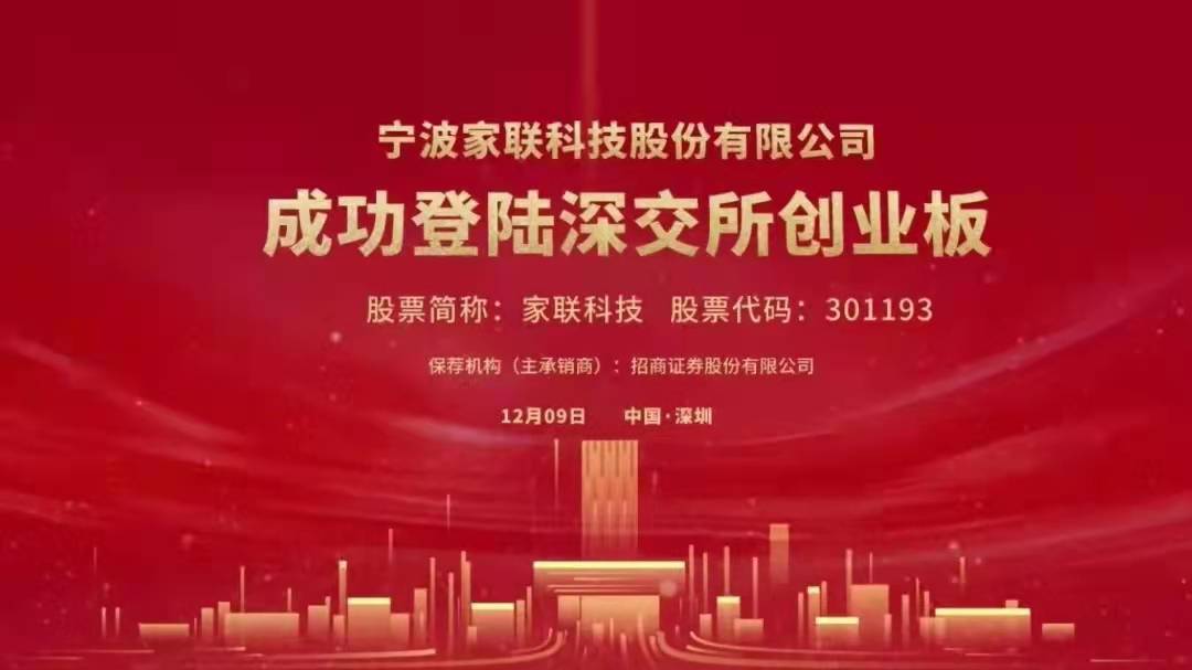 2021年12月9日,校友企业宁波家联科技股份有限公司(股票代码:301193)在深圳证券交易所创业板上市挂牌交易,公司董事长为我校88届化学专业校友王熊。