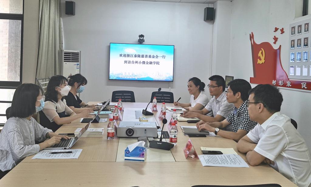 6月30日,浙江泰隆慈善基金会秘书长蔡鸿鹏一行来校就台州小微金融发展基金项目及基金会评估工作开展考察交流。校地方合作处处长、台州学院教育发展基金会秘书长王金宝,校商学院院长、台州小微金融研究院院长段文琦,台州学院教育发展基金会副秘书长郑晓莉,台州小微金融研究院副院长陈耸参加交流座谈。