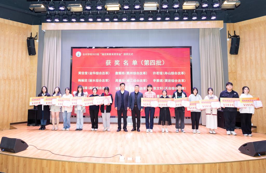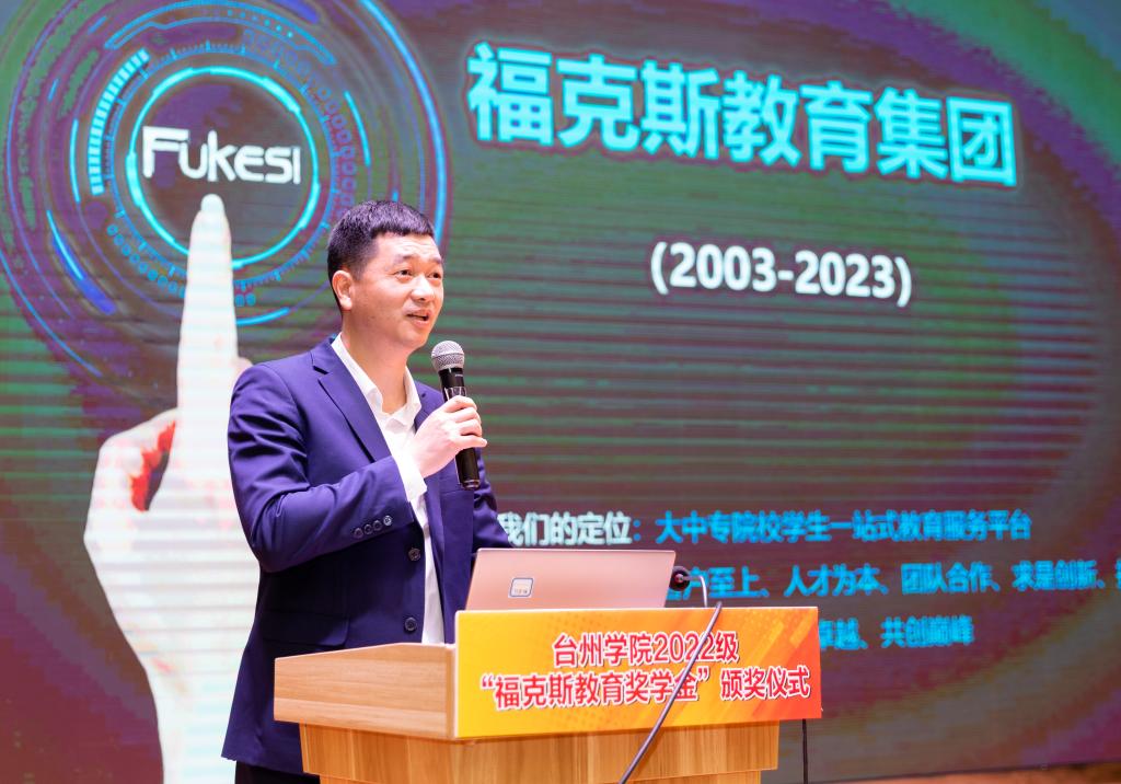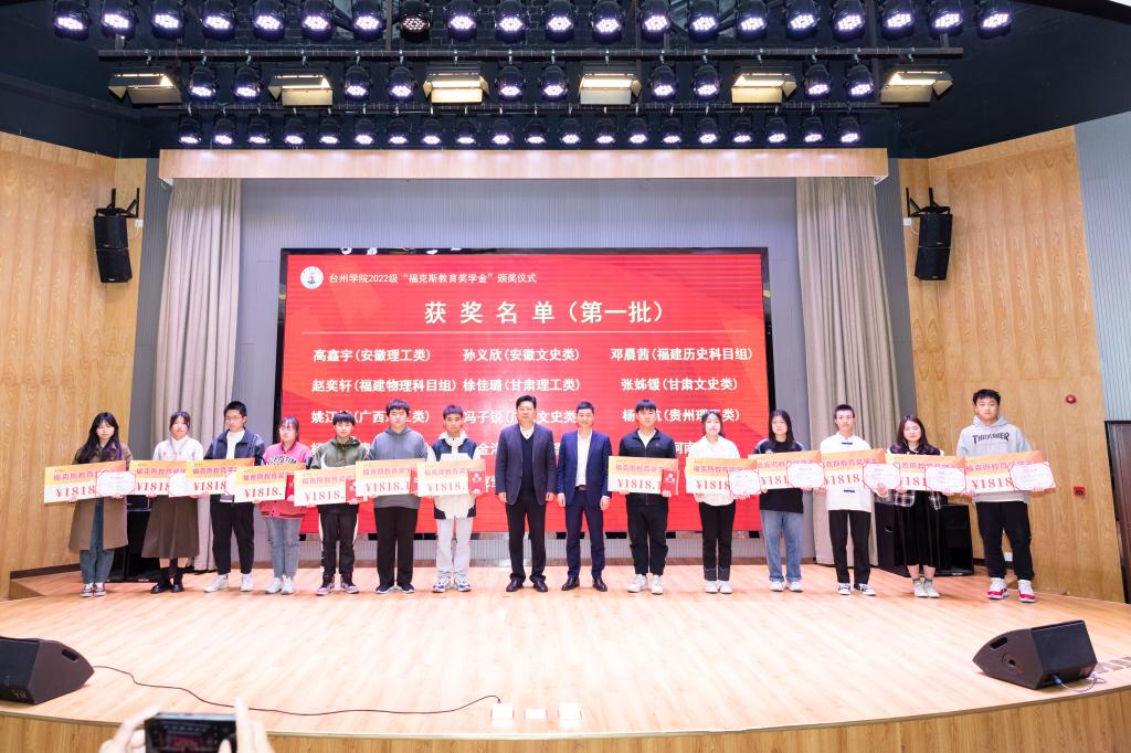 据悉,“福克斯教育奖学金”由浙江福克斯教育科技有限公司联合台州市山东商会于2021年12月向台州学院教育发展基金会捐赠50万元发起设立,从2022年开始对入学我校的成绩优异的本科大一新生给予奖励,旨在鼓励全国各地优秀学子报考台州学院。