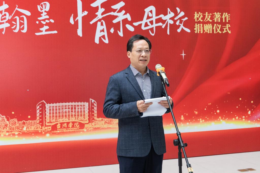 潘通天表示,此次校友捐赠著作,是对我校图书资源建设的倾情奉献,更是一种精神上的薪火传承。这批著作是校友们开拓奋进的实证,更是我校百余年发展的印记,也是对台院精神、台院文化的传承和弘扬。他指出,校图书馆要保存好、宣传好校友著作,成为师生校友学术传承和成果展示的一个窗口,彰前贤、励后学,赓续“三台”文脉。