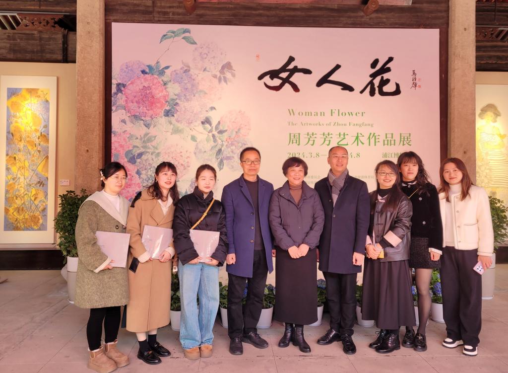 日前,艺术与设计学院00级美术教育专业校友周芳芳的“女人花”个人艺术作品展在浙江金华浦江博物馆成功举办,学院副院长赵振华、人文学院党委副书记林军辉、院退休老领导金灵秋及多位校友到场观展。