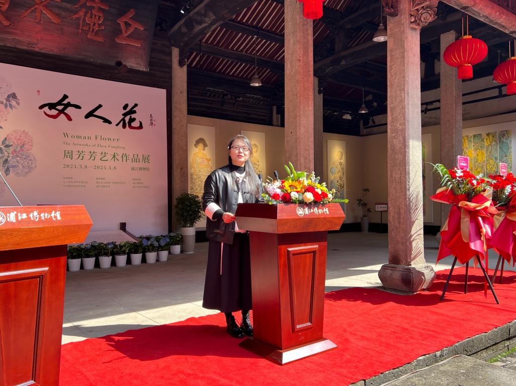 此次展览由九三学社金华市委员会、中共浦江县委宣传部主办,浦江县文化和广电旅游体育局、浦江县教育局承办,共展出周芳芳个人绘画作品100余幅、画瓷作品20余件,展现出一个优良的浦江书画之乡的女书画家艺术风采。